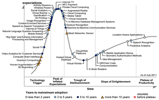 Gartner Hype Cycle 2011, nieuwe ICT innovaties op de radar