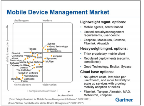 • Management? Dit is een nog erg onvolwassen markt. Kijk eens naar onderstaand magic quadrant en je ziet wie de spelers zijn: