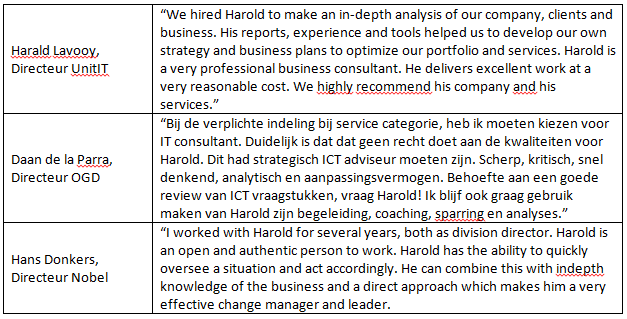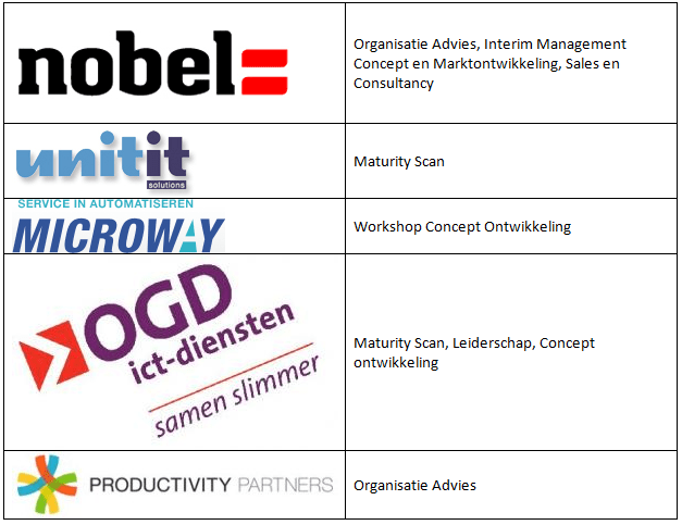 Mijn ruim 20 jaar lange management- en advies ervaring bij verschillende ICT bedrijven, gebruik ik graag om andere ICT leveranciers op het goede pad te helpen. Een pad dat leidt naar tevreden klanten, tevreden werknemers, tevreden aandeelhouders en een maatschappelijk verantwoordde positie. Na uitvoering van een maturity scan wordt duidelijk waar de kansen en bedreigingen zich bevinden en is een roadmap een handig instrument om mee verder te gaan. En dit kan worden uitgebreid met coaching, workshops of zelfs portfolio en concept ontwikkeling. Of gewoon een stuk interim management om snel zaken gerealiseerd te krijgen. ICT bedrijven die gebruik hebben gemaakt van de expertise van Episteem zijn: